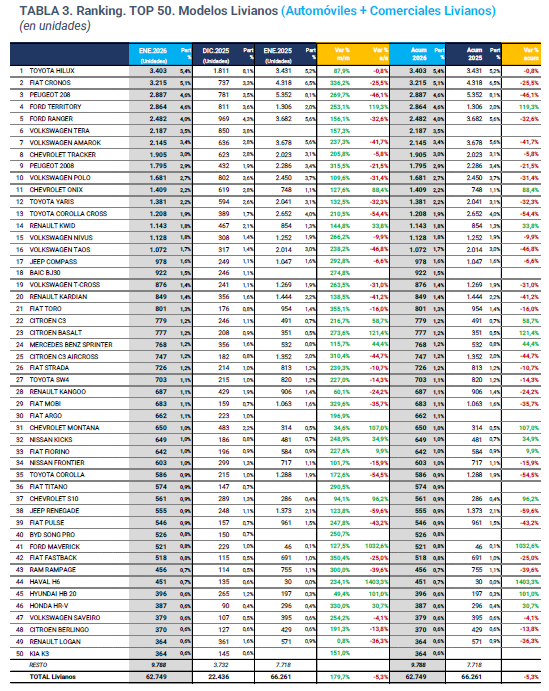 Acceda al informe completo aquí: patentamientos autos Enero 2026.pdf